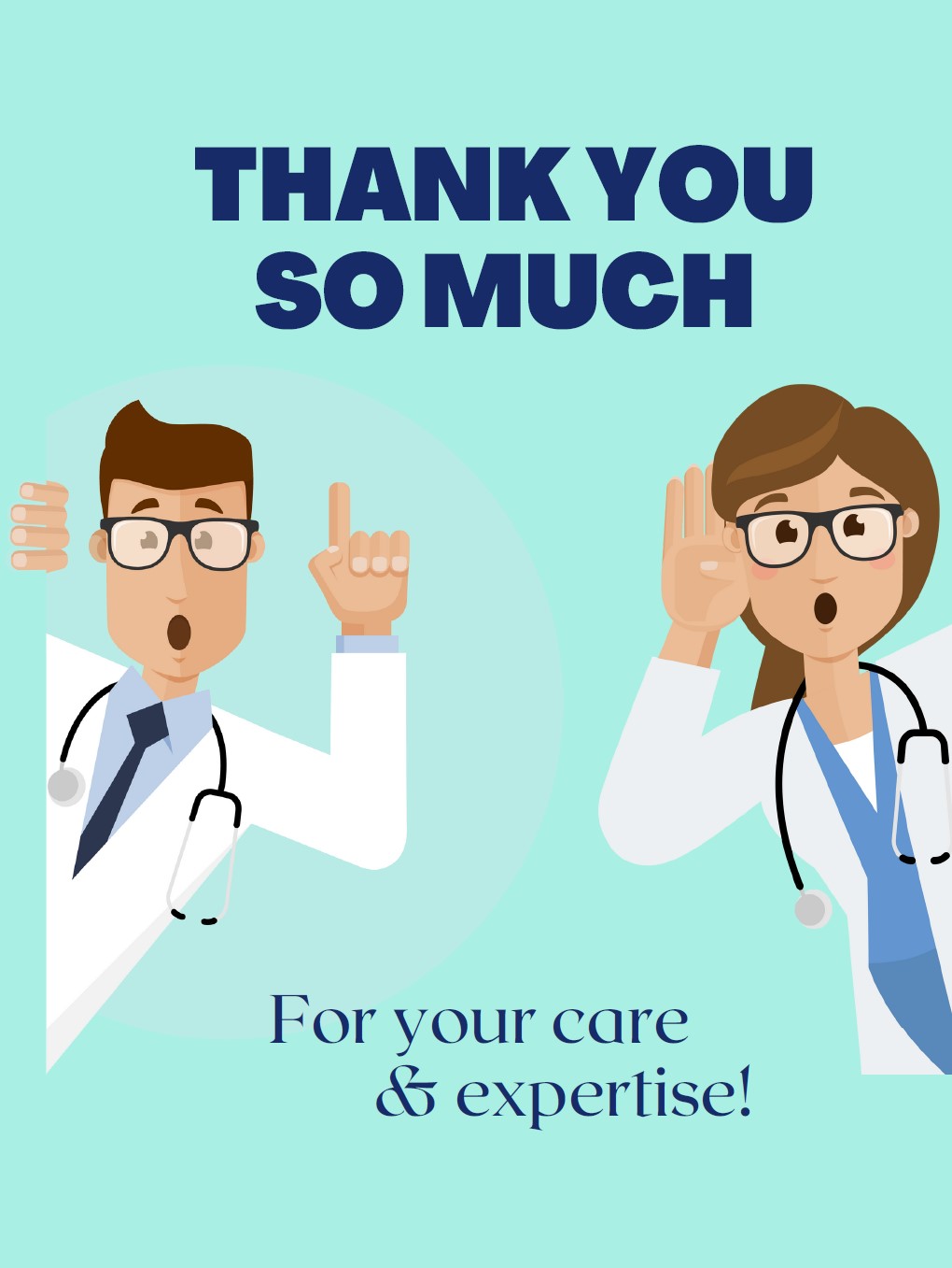 Show your heartfelt appreciation to the unsung hero of your medical journey with our Doctors Thank You Card. Designed with a charming cartoon illustration of a male and female doctor on the front, this card speaks volumes of your gratitude in a lighthearted and touching way.