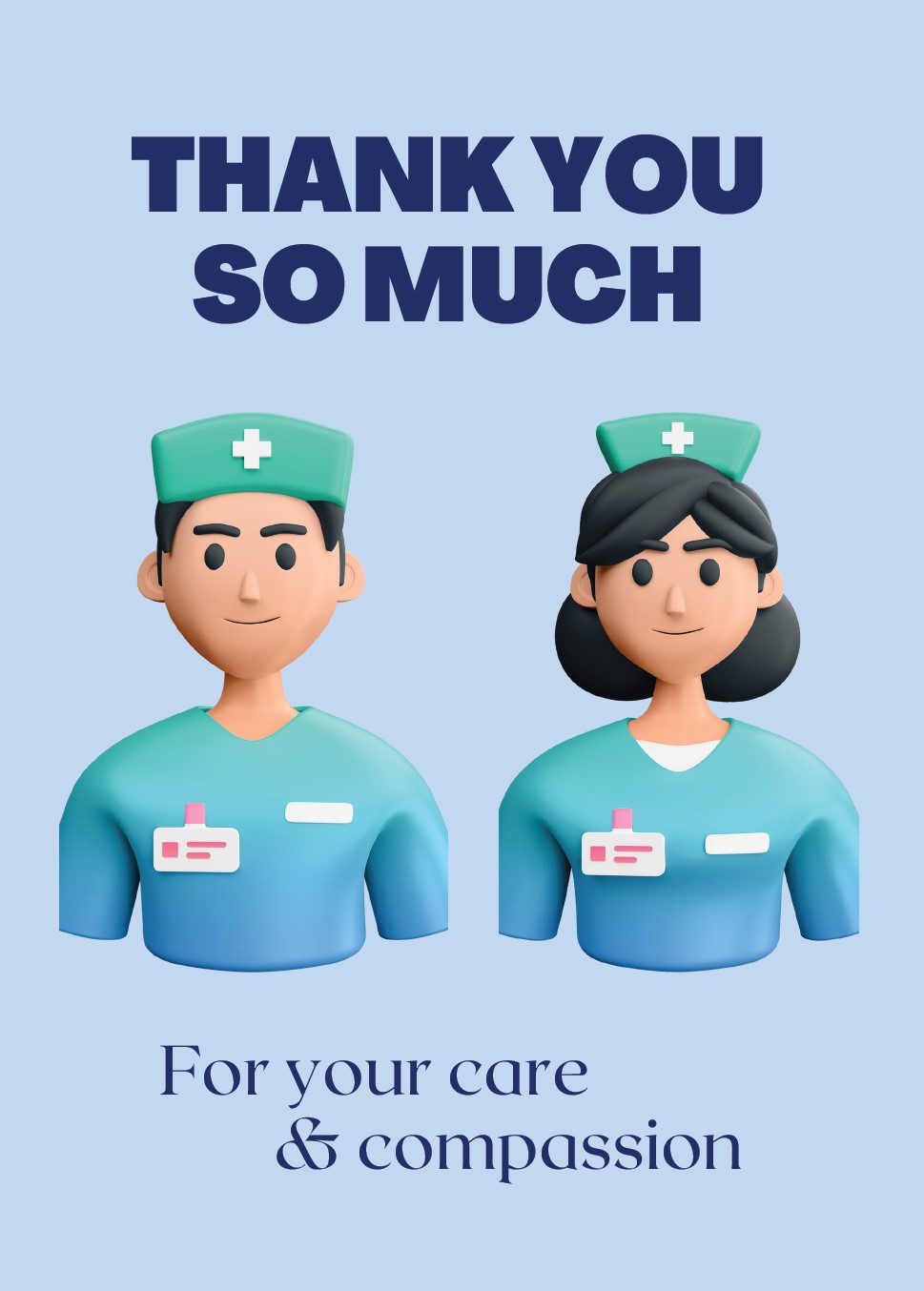 Show your heartfelt appreciation to the unsung hero of your medical journey with our NursesThank You Card. Designed with a charming cartoon illustration of a male and female nurse on the front, this card speaks volumes of your gratitude in a lighthearted and touching way.