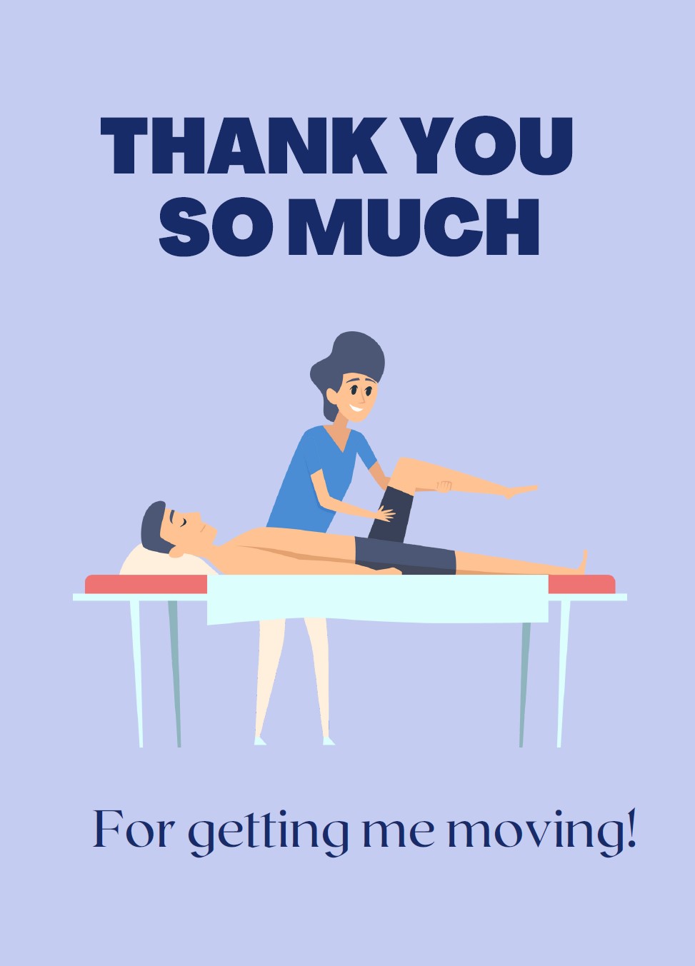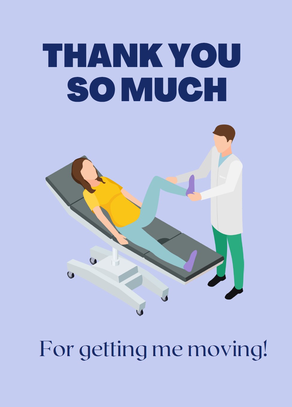 Show your heartfelt appreciation to the unsung hero of your medical journey with our OT Female Thank You Card. Designed with a charming cartoon illustration of a male patient with a female Physio on the front, this card speaks volumes of your gratitude in a lighthearted and touching way.